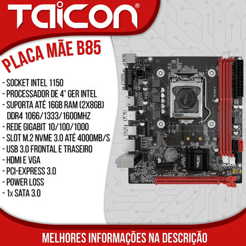 Placa Mãe B85 Ddr3 Lga1150- I3 - i5 - i7 - 4° Geração