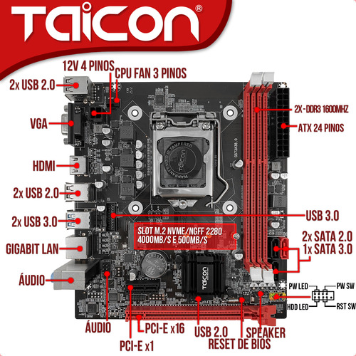 1x - M.2 NVME/SATA 3.0 x4 até 4000mb/s