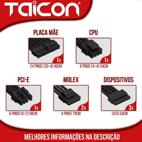 - 1x ATX 12V (4 pinos + 4 pinos) 54cm