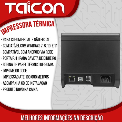 Suprimento utilizado: Bobina de papel térmico de 80mm.