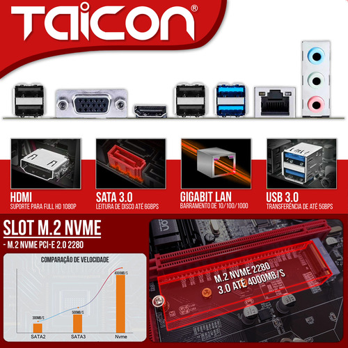 1x - M.2 NVME/SATA 3.0 x4 até 4000mb/s